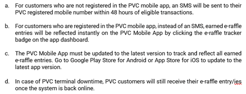 13. PVC customers will be notified of their earned e-raffle entries upon completion of eligible transactions.